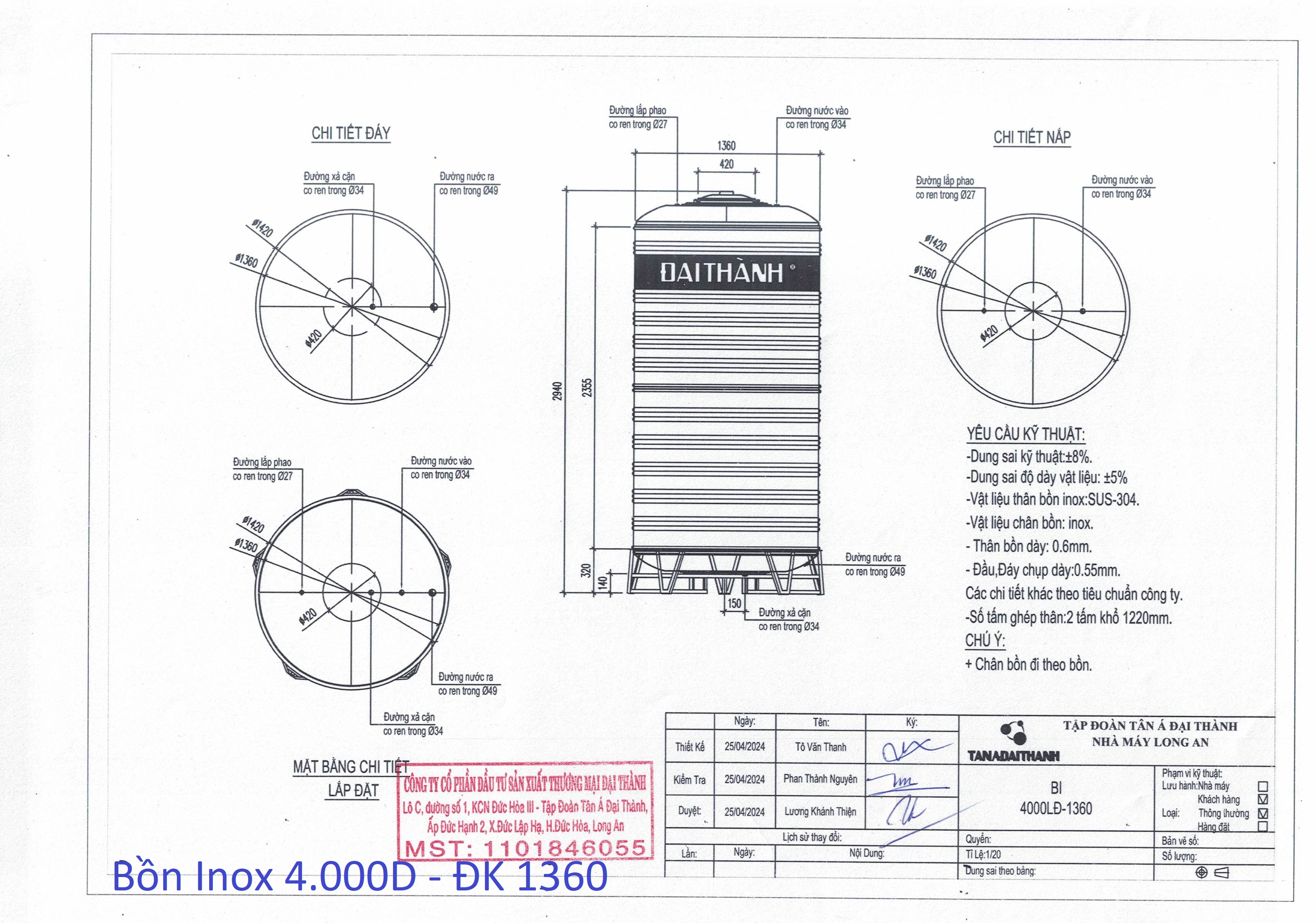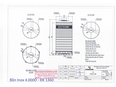 BỒN INOX ĐẠI THÀNH 4.000L ĐỨNG