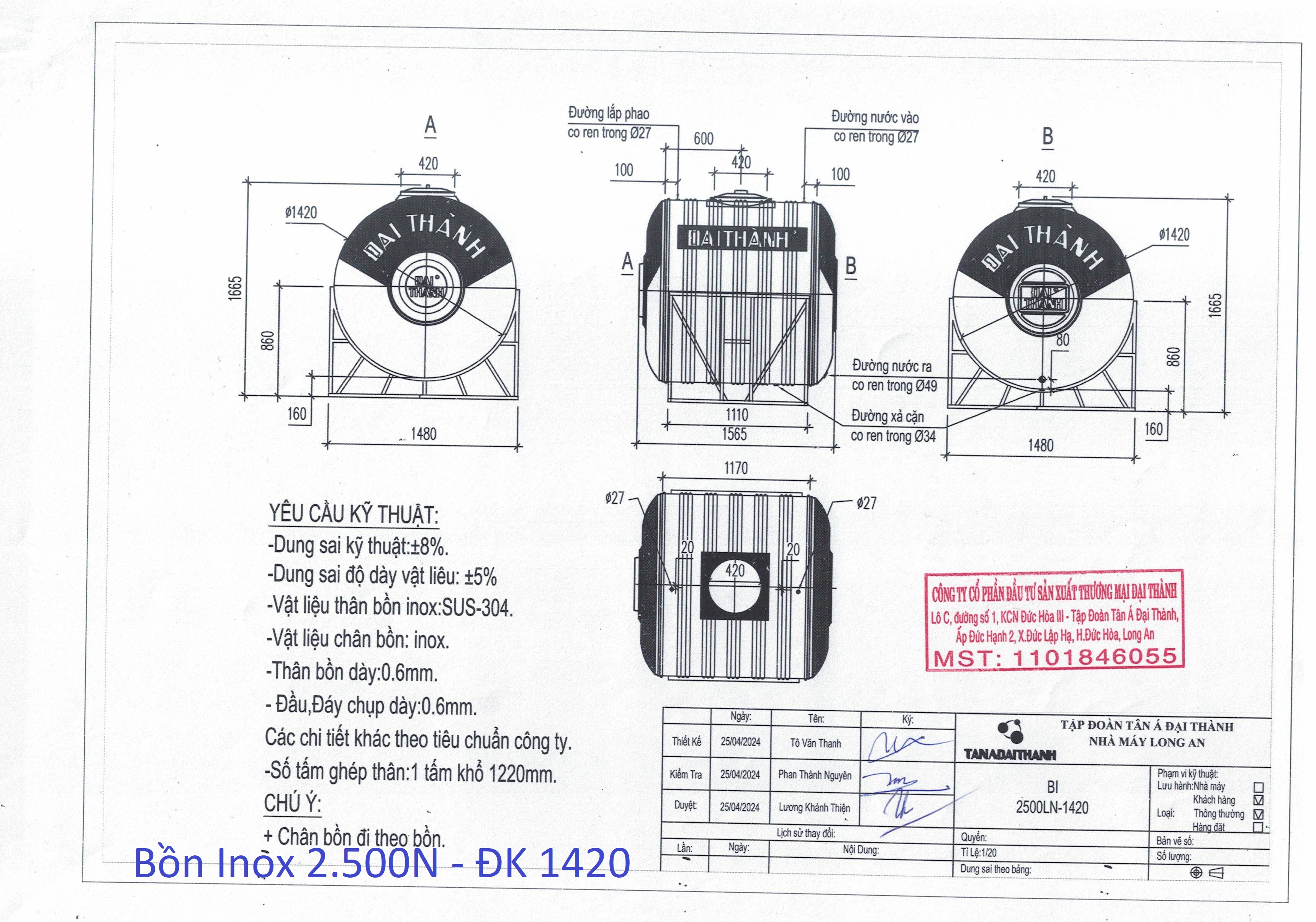 - Bồn nước Inox Đại Thành. Chất liệu: Thép không gỉ SUS 304. Bảo hành chính hãng: 12 năm