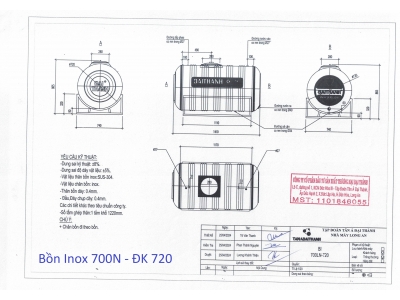 BỒN INOX ĐẠI THÀNH 700L NGANG